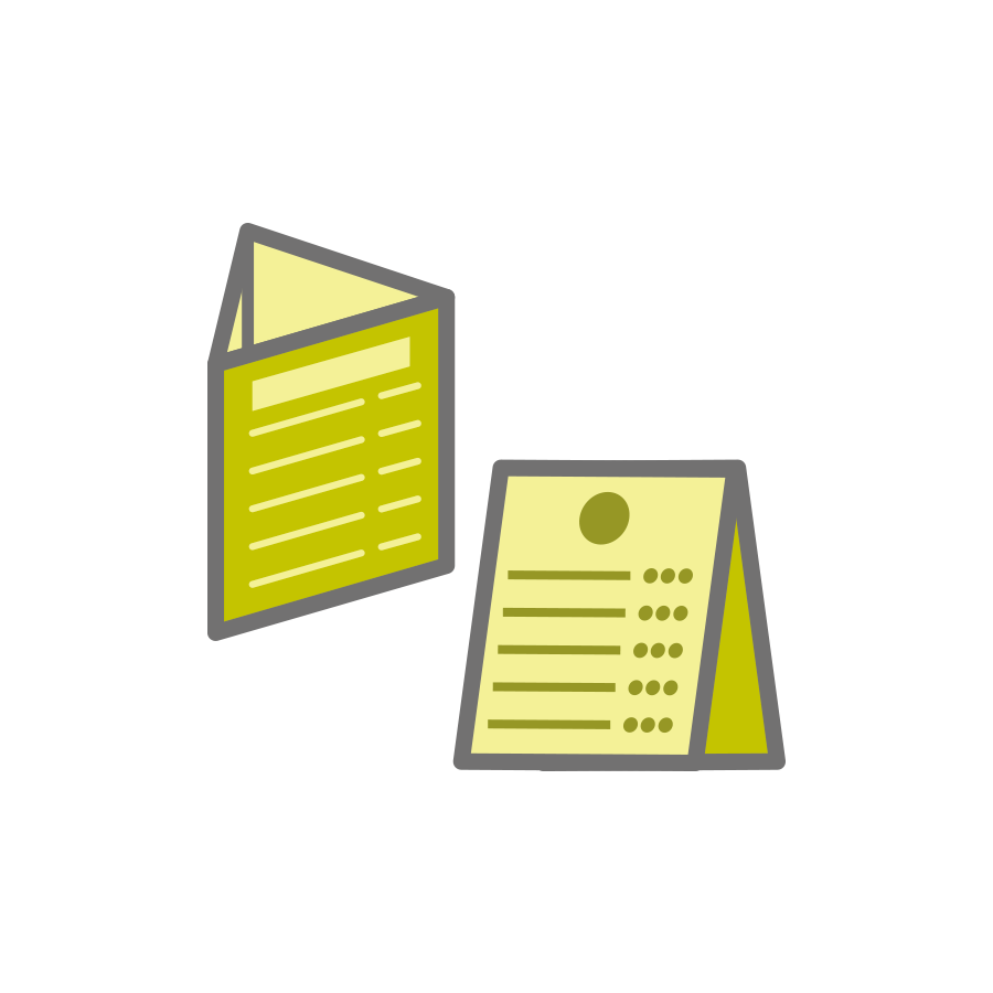 印刷物:チラシ、ポスター、名刺、ショップカード、スタンプカード、プライスタグ、メニュー表、ロゴ、パンフ、リーフレット、DM、シール、イラスト、チケット、地図など |
